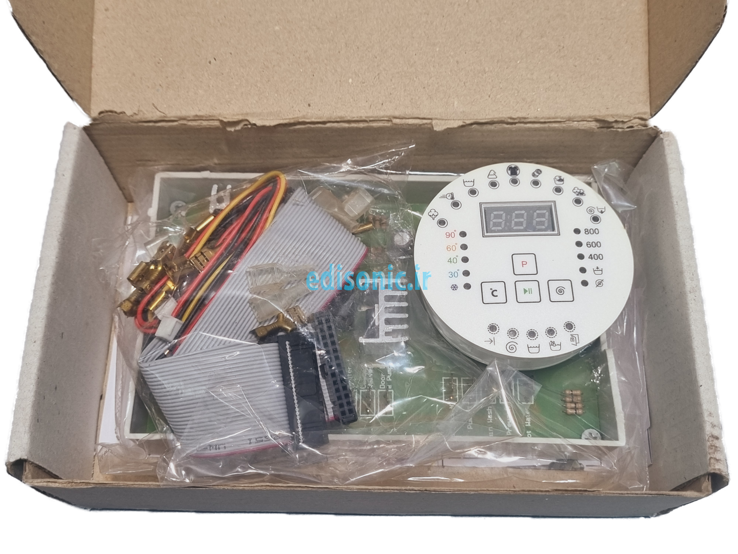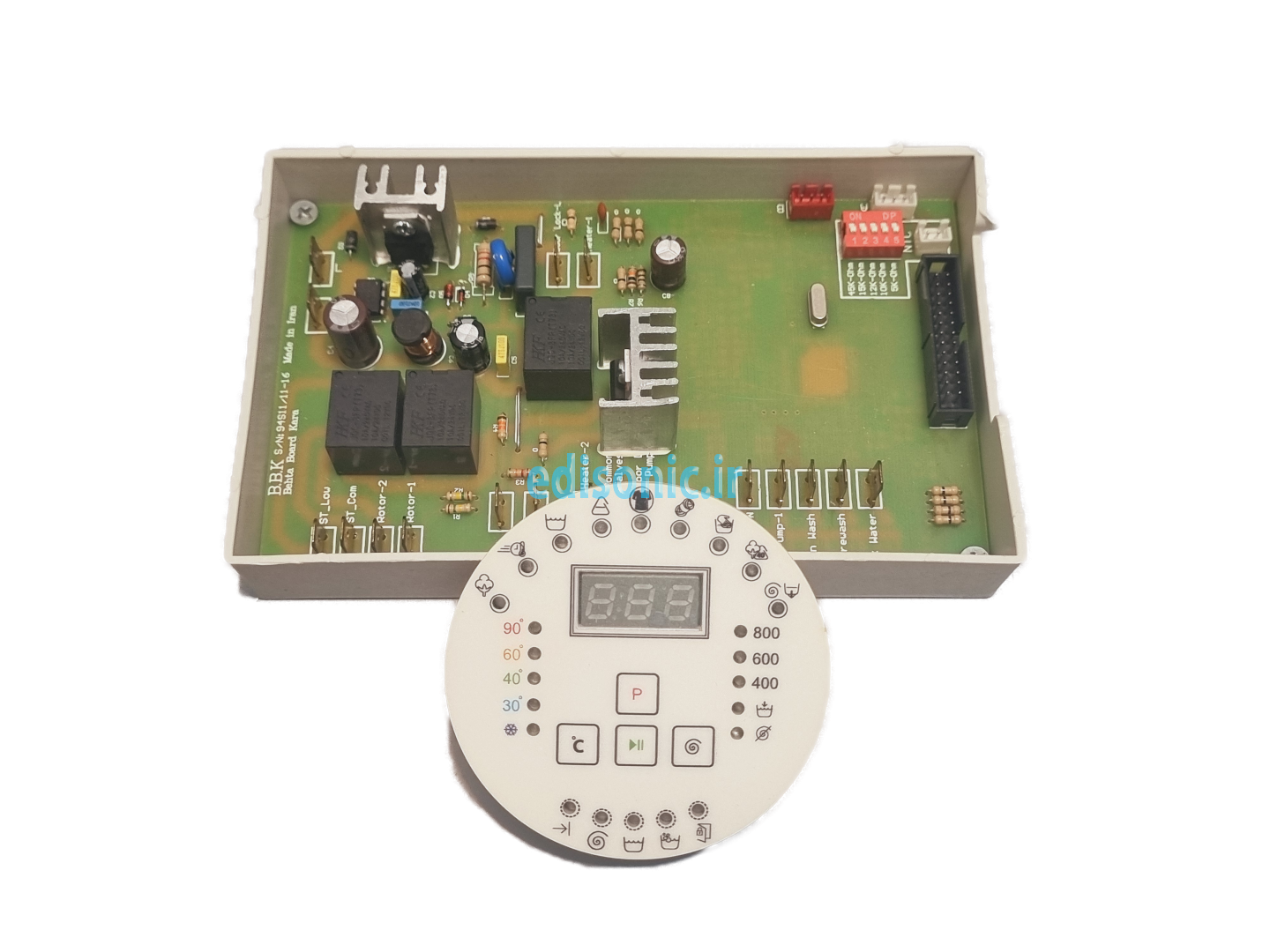 این محصول یک برد الکترونیکی کنترل کننده و نمایشگر ماشین لباسشویی مناسب برای ماشین های لباسشویی بر اساس موتور یونیورسال است که از دو برد متصل به نمایشگر و مدار برق تشکیل شده است.